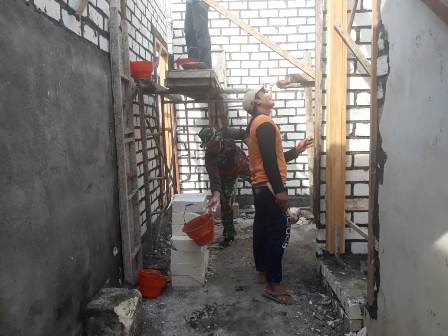 Tampak terlihat pada rumah Karjono saat ini, rumahnya sudah terlihat berdiri kokoh meskipun masih belum selesai pengerjaanya. Serka Sumarto mengatakan jika hari ini rencananya satgas TMMD bersama masyarakat akan melaksanakan plesteran pada dinding temboknya yang kemudian setelah di plester akan di aci supaya menjadi halus.