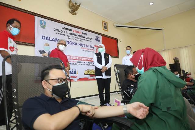Kegiatan donor darah dan plasma konvalesen ini mendapat perhatian khusus dari Gubernur Jawa Timur Khofifah Indar Parawansa yang berkesempatan meninjau langsung pelaksanaannya.