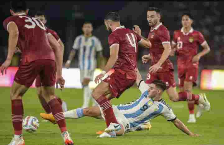 Albicaleste menundukkan perlawanan timnas Garuda dengan skor akhir 2-0 melalui gol yang dicetak Leandro Paredes pada menit ke-38 dan Cristian Romero menit ke-55.