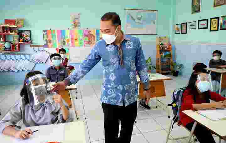 SURABAYA (global-news.co.id) – Walikota Surabaya Eri Cahyadi didampingi Kepala Dinas Pendidikan (Dispendik) Kota Supomo meninjau pelaksanaan hari pertama Pembelajaran Tatap Muka (PTM) ke beberapa sekolah. Mulai dari SMP 17 Agustus, SDN Airlangga I, SMP Kristen YBPK I, SDN Kaliasin I, dan SMPN 6 Surabaya.