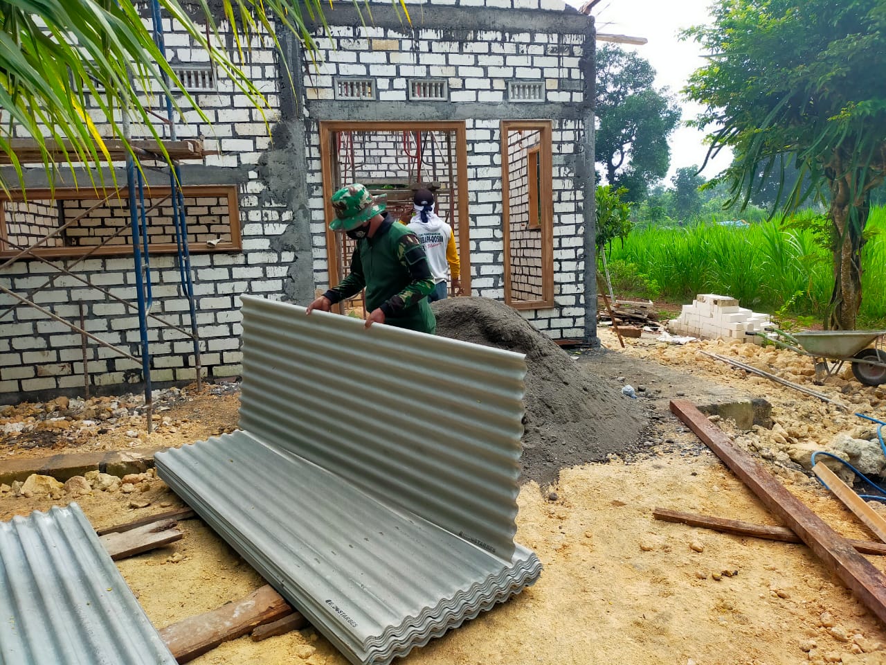 ”Luar biasa proses pekerjaannya dari TNI, saat ini sudah mulai memasang atap asbes, masih berjalan padahal targetnya 30 hari yang ditentukan harus selesai,” ucap Pratu Andi dari Yon Arhanuds 8 Satgas TMMD.