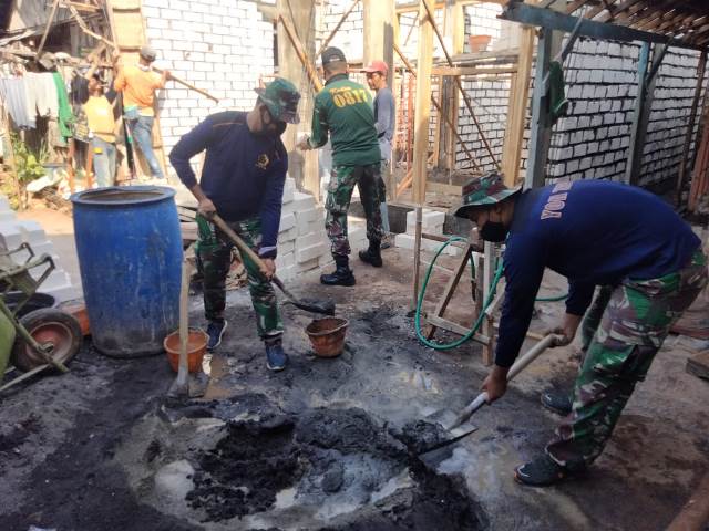 “Kita bergotong-royong melakukan pemasangan Batako dinding di rumah warga penerima RTLH bersama-sama warga,” terang Sertu Didik.