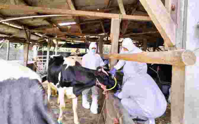Ia menambahkan, selain mengambil sampel hewan ternak sapi, pertugas juga mengambil sampel di kandang hewan ternak kambing. “Hari ini, kami ambil sampel dua kandang sapi perah, dan satu kandang kambing,” imbuhnya.