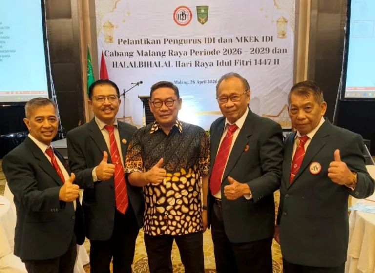 MALANG (Global-News.co.id) – Ketua Ikatan Dokter Indonesia (IDI) Wilayah Jatim Dr.dr.Sutrisno, Sp.OG (K) melantik