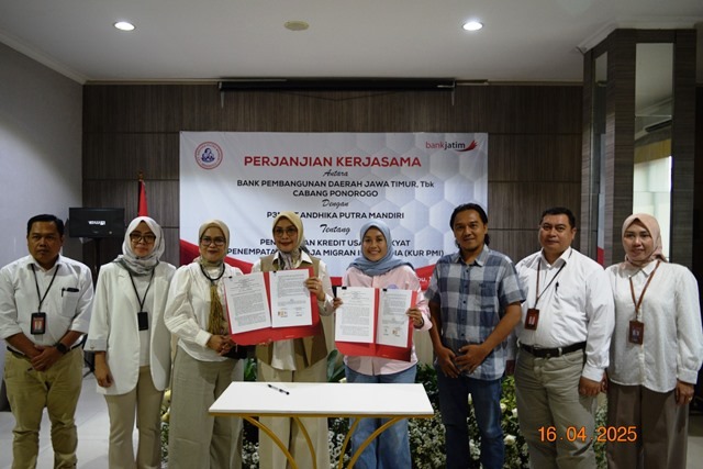 Bank Jatim Cabang Ponorogo telah melakukan penandatanganan perjanjian kerjasama (PKS) dengan P3MI PT Andhika Putra Mandiri tentang penyaluran KUR penempatan PMI pada Rabu, 16 April 2025 lalu.