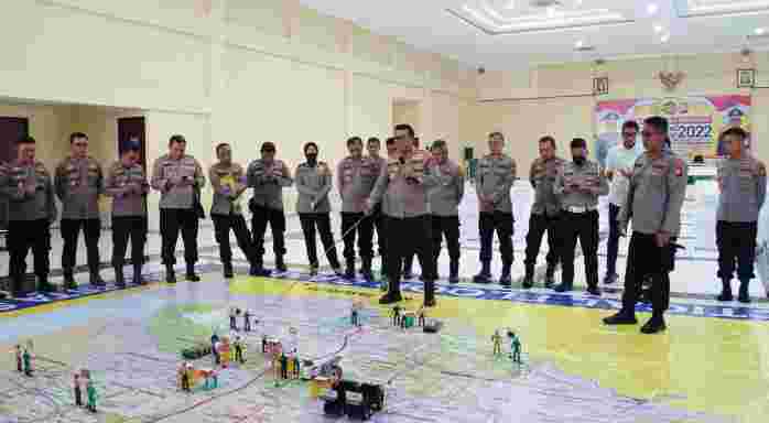 Jelang pelaksanaan Operasi Lilin Semeru 2022, dalam rangka mengamankan Hari Raya Natal dan Tahun Baru 2023, Polresta Sidoarjo menggelar Latihan Pra Operasi (Latpra Ops) Lilin Semeru 2022, Rabu (21/12/2022) di Gedung Serbaguna Polresta Sidoarjo.