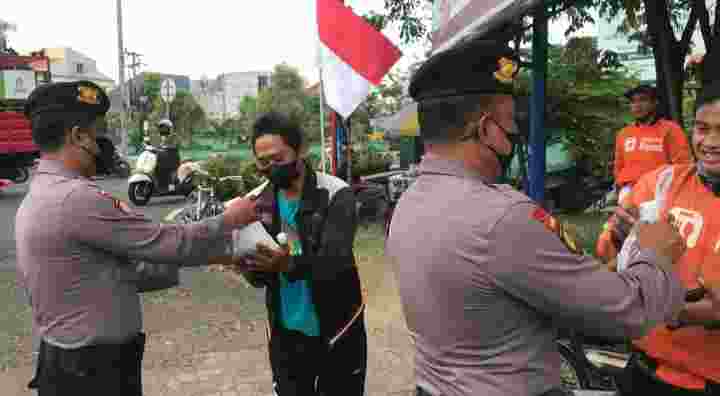 Hasil dari yang terkumpul dari anggota Sat Samapta Polresta Sidoarjo, kemudian dirupakan bahan makanan untuk diberikan ke orang duafa atau orang kurang mampu, yang ditemui anggota saat melakukan patroli Kamtibmas di jalan raya.