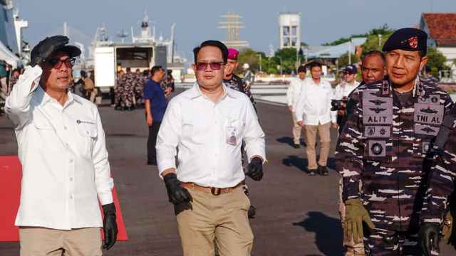 Sekdaprov Jatim Adhy Karyono mewakili Gubernur Jawa Timur Khofifah Indar Parawansa melepas Ekspedisi Rupiah Berdaulat (ERB) Nasional Tahun 2025 bersama Kepala Perwakilan Bank Indonesia Provinsi Jawa Timur Ibrahim dan Panglima Komando Armada II Laksamana Muda TNI I Gung Putu Alit Jaya di Dermaga Madura Surabaya, Selasa (14/10/2025).
