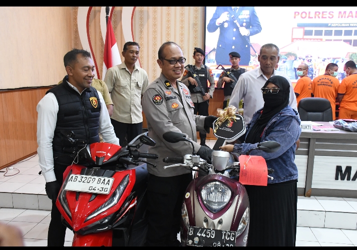 Pada saat yang bersamaan, juga dilakukan penyerahan barang bukti berupa dua unit sepeda motor kepada pemiliknya setelah dilakukan identifikasi dokumen kepemilikan kendaraan. (hms/her)